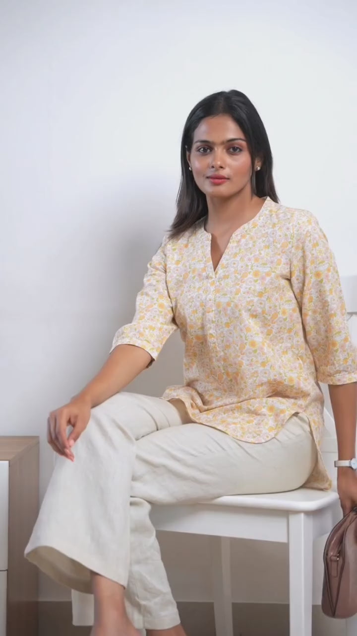 Embrace vibrant elegance with this multicolor cotton tunic, adorned with beautiful floral prints that exude a fresh, lively charm. Designed with 3/4th sleeves and a flattering below-hip length, this tunic is perfect for effortless style and comfort. The soft, breathable cotton fabric ensures all-day comfort, making it an ideal choice for both casual outings and relaxed gatherings. Pair it with your favorite leggings or jeans for a chic, versatile look.